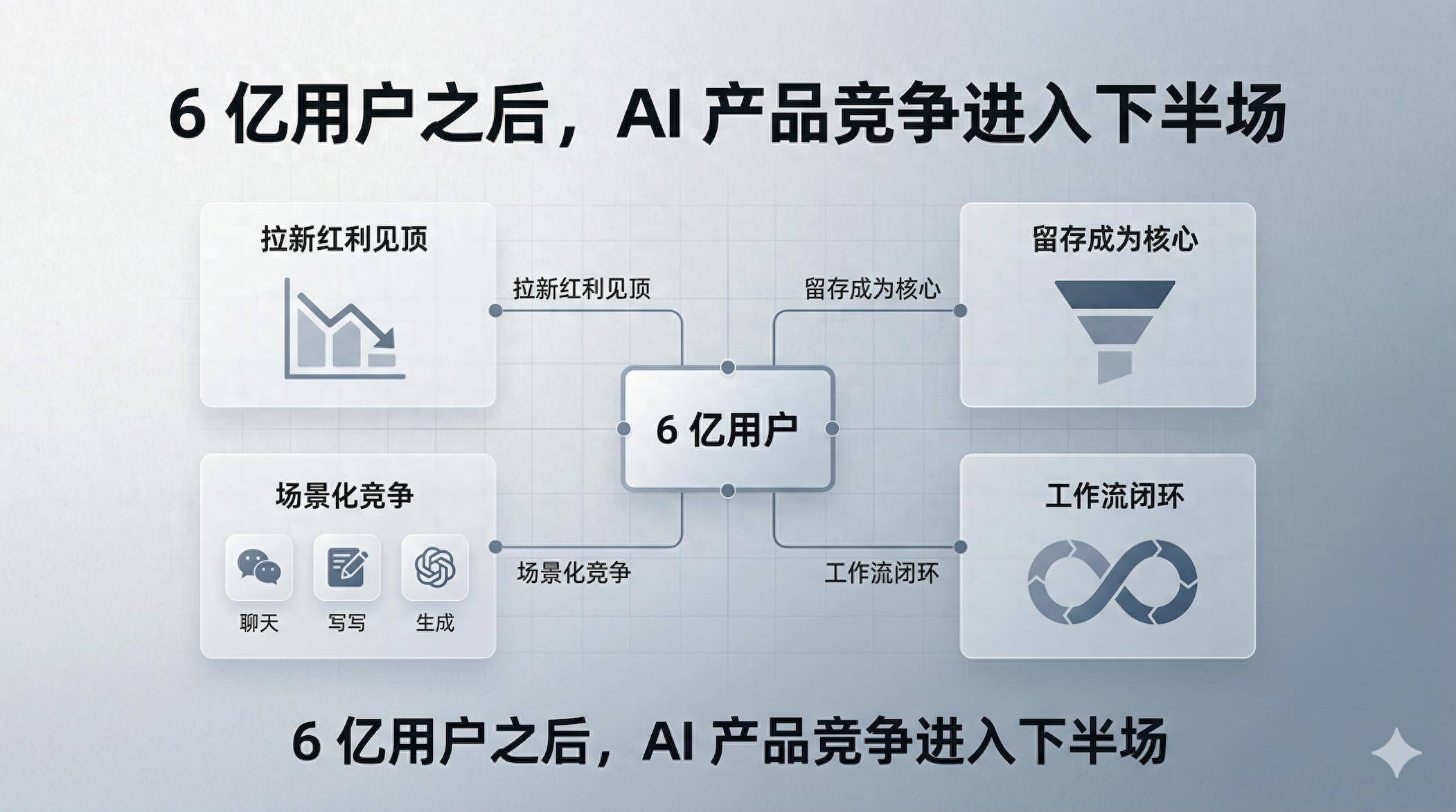 若是你是作念 AI 居品的,看到“6 亿用户”这个数字之后,最不该作念的是陆续千里迷总量叙事。